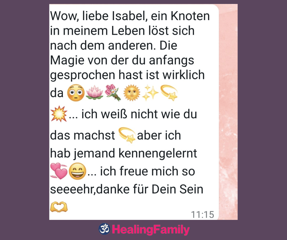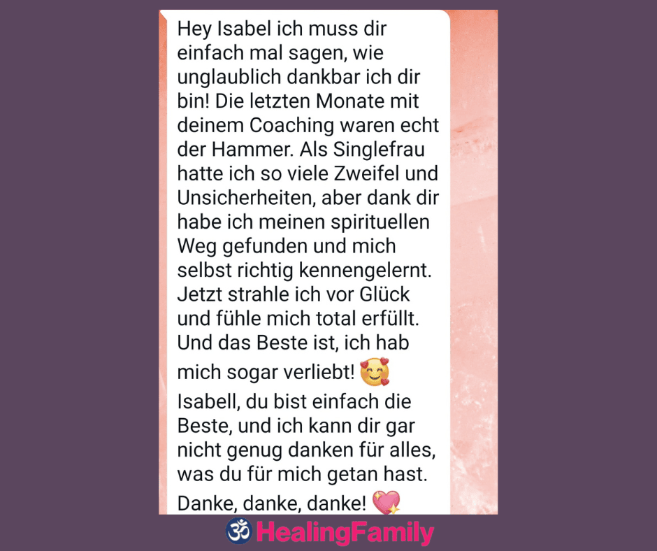 Doch ich habe gelernt, meine Energie zu verändern, mich selbst zu lieben und mich für eine neue Qualität von Partnerschaft zu öffnen und mich für den spirituellen Weg zu öffnen.
